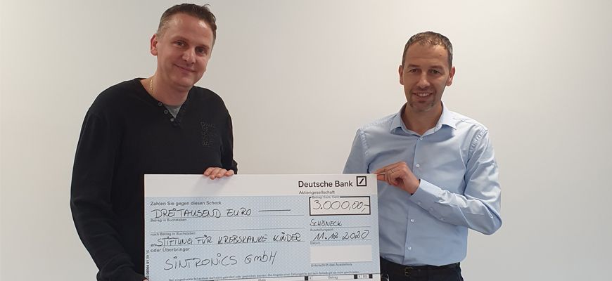 This year, the company SINTRONICS GmbH from Schöneck has once again made a great donation to us. With 3,000 Euros they support the important research work in the field of cancer in children and adolescents.