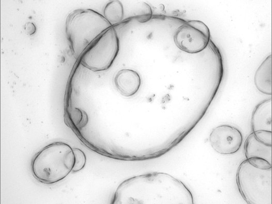 Microscopic image of laboratory-cultivated patient-derived pancreas organoids. Scale bar: 250 µm. (Image credits: Kaja Wächtershäuser, Nadine Weinelt (AG van Wijk))
