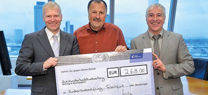 The employees came third in Union Investment’s in-house football tournament and presented the managing director of the Frankfurt Foundation for Children with Cancer with a pro-rata donation cheque of €268. The donation came from the participation fees collected.