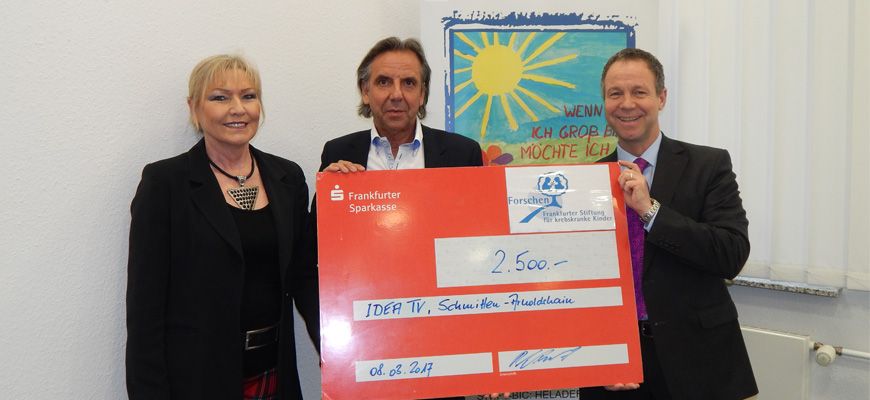 von links: Melitta Radner (Redaktionsleitung, IDEA TV Gesellschaft für kommunikative Unternehmensbetreuung mbH), Bruno Wilbert (Geschäftsführer, IDEA TV Gesellschaft für kommunikative Unternehmensbetreuung mbH), Uwe Menger (Vorstandsmitglied der Frankfurter Stiftung für krebskra…