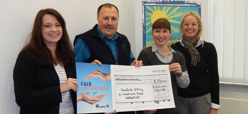 von links: Alexandra Saum (Immobilienfinanzierung, ING-DiBa Frankfurt am Main), Rudolf Starck (Geschäftsführer der Frankfurter Stiftung für krebskranke Kinder), Nicole Koch (Immobilienfinanzierung, ING-DiBa Frankfurt am Main) und Corinna Wittmann (Immobilienfinanzierung, ING-DiB…