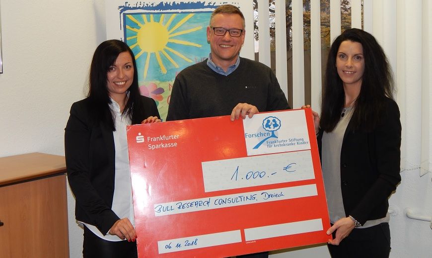 Anstelle von Weihnachtsgeschenken fördert die BULL RESEARCH CONSULTING aus Dreieich in diesem Jahr die Arbeit unserer Stiftung mit einem Scheck in Höhe von 1.000 Euro. BULL RESEARCH CONSULTING ist eine Personalberatung, die ihre Kunden branchenübergreifend in der Personalsuche n…