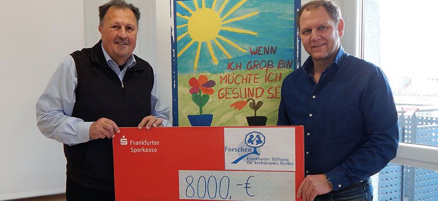 Nach einer kurzen Hausführung durch den Geschäftsführer der Frankfurter Stiftung für krebskranke Kinder, Herr Rudolf Starck (1.v.l), überreicht Herr Sven Mattis (2.v.l.)…