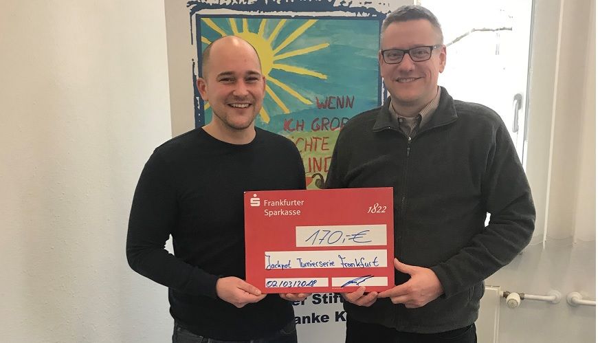 Christopher Sand von der Jackpot Turnierserie Frankfurt war am Freitag zu uns gekommen, um das Geld, das sich im Jackpot befand, zu übergeben.