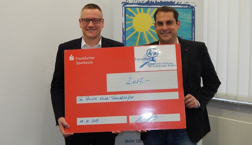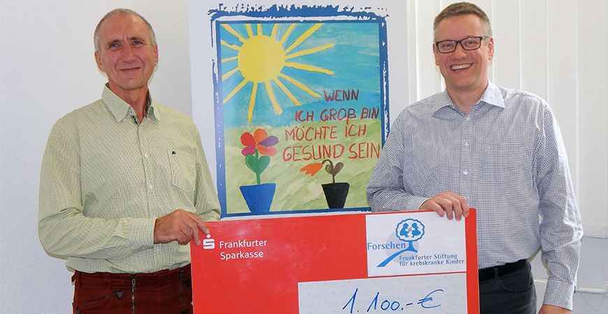 Anlässlich seines sechzigsten Geburtstages überreicht Herr Ralf Rothkegel (links im Bild) dem Geschäftsführer der Frankfurter Stiftung für krebskranke Kinder, Herrn Dirk Kammertöns, eine Geldspende über 1.100,- €.
