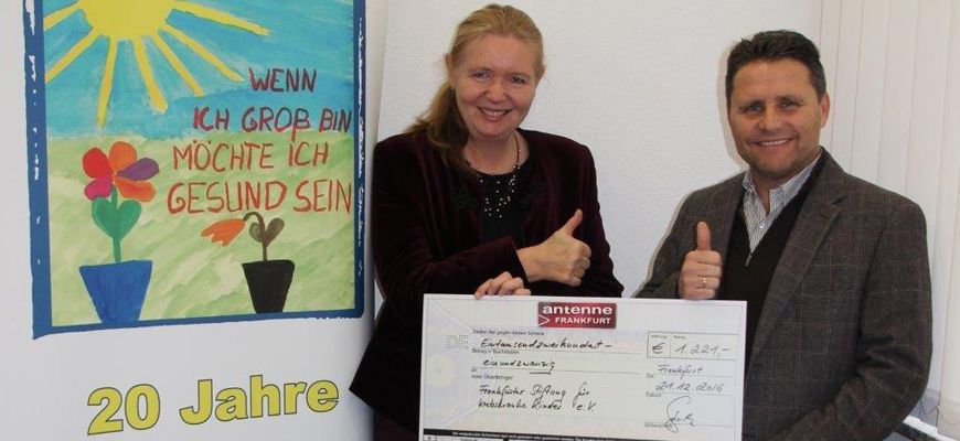von links: Karin Reinhold-Kranz (Mitglied des Vorstands der Frankfurter Stiftung für krebskranke Kinder) Stephan Schwenk (Geschäftsführer und Verantwortlicher der Antenne Frankfurt)