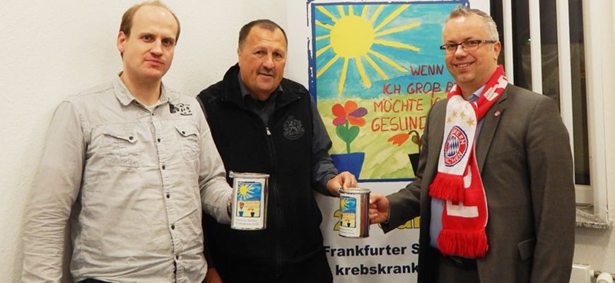 Tobias Stellmacher (Kassenwart / FC Bayern München Fanclub Frankfurt), Rudolf Starck (Geschäftsführer der Frankfurter Stiftung für krebskranke Kinder), Viktor Grunski (Beisitzer / FC Bayern München Fanclub Frankfurt)