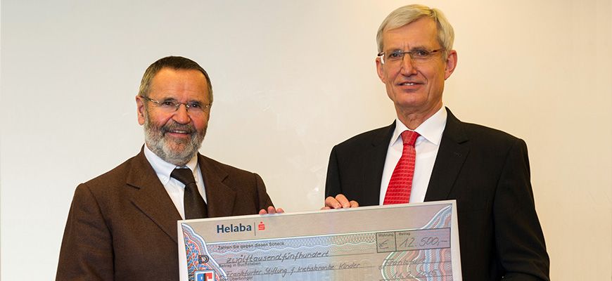 von links: Dr. Jürgen Vogt (Vorstands-Vorsitzender der Frankfurter Stiftung für krebskranke Kinder) und Herr Rainer Krick (Mitglied des Vorstandes der Helaba, Landesbank Hessen-Thüringen)