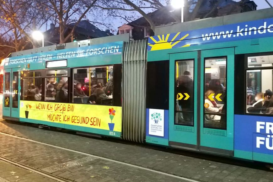 Frankfurter Straßenbahn fährt für die Kinderkrebsforschung