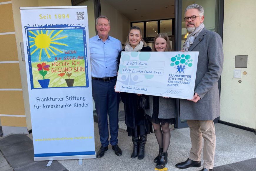 Das Team der FRED Executive Search GmbH hatte beschlossen, in diesem Jahr anstelle von Weihnachtspräsenten an die Kunden eine regionale gemeinnützige Organisation mit einer Spende zu unterstützen.